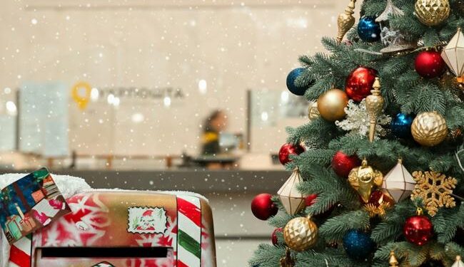 У центральній залі Головпоштамту на Хрещатику вже сяє ялинка. Весь грудень тут пануватиме тепла атмосфера, ідеальна для сімейних моментів. Поруч із ялинкою розташована спеціальна поштова скринька, куди можна покласти лист Святому Миколаю.