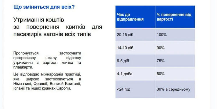 Повернути вартість квитка на залізницю можна буде залежно від часу до відправлення: