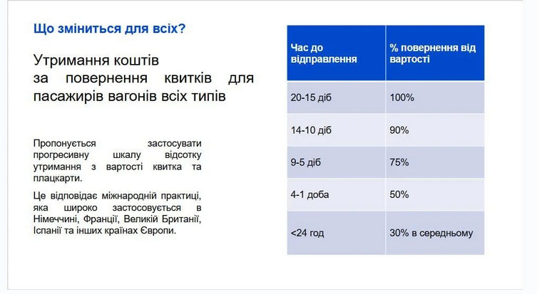 Офіційний комісійний збір 30 грн та страховку, як і раніше, залізниця не повертатиме – тут змін немає.