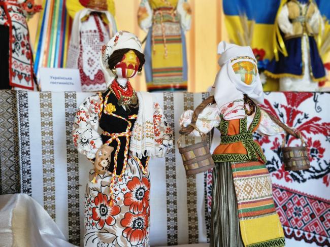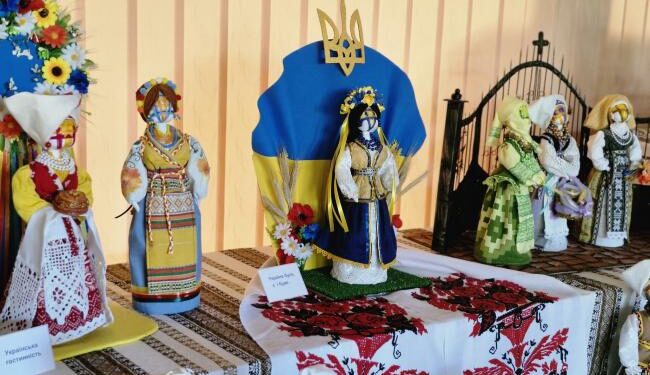 В експозиції представлені ляльки-берегині, кожна з яких має власне ім’я та символічну місію: вони бережуть Україну, ідуть до храму, колядують, печуть пиріжки чи варять вареники.