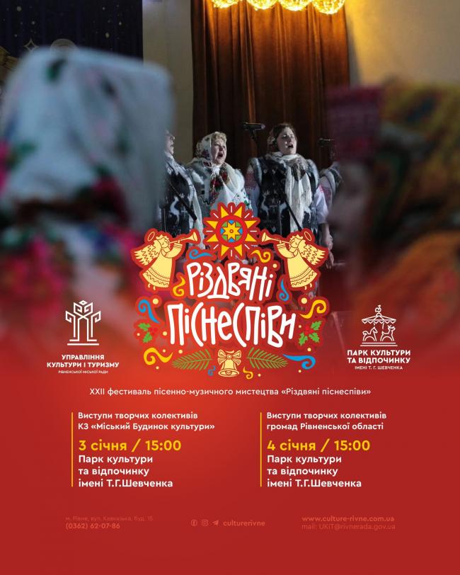- 4 січня свою творчість даруватимуть творчі колективи з громад Рівненської області, представляючи багатство традицій нашого краю.