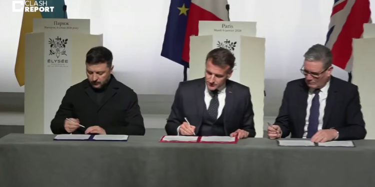 Президент України Володимир Зеленський, президент Франції Еммануель Макрон і прем’єр-міністр Великої Британії Кір Стармер підписали декларацію про наміри щодо розгортання багатонаціональних сил в Україні після завершення війни. Про це стало відомо під час спілкування лідерів зі ЗМІ за підсумками зустрічі “коаліції охочих”, пише УНІАН.